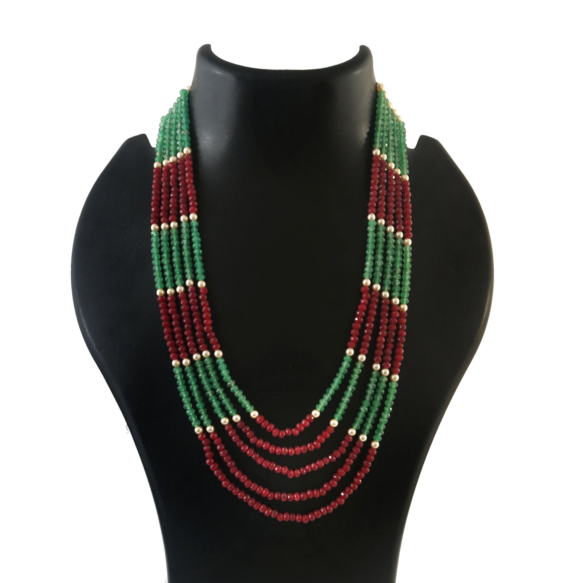 BM-128 - Jadau Kundan Beads Necklace with Emerald