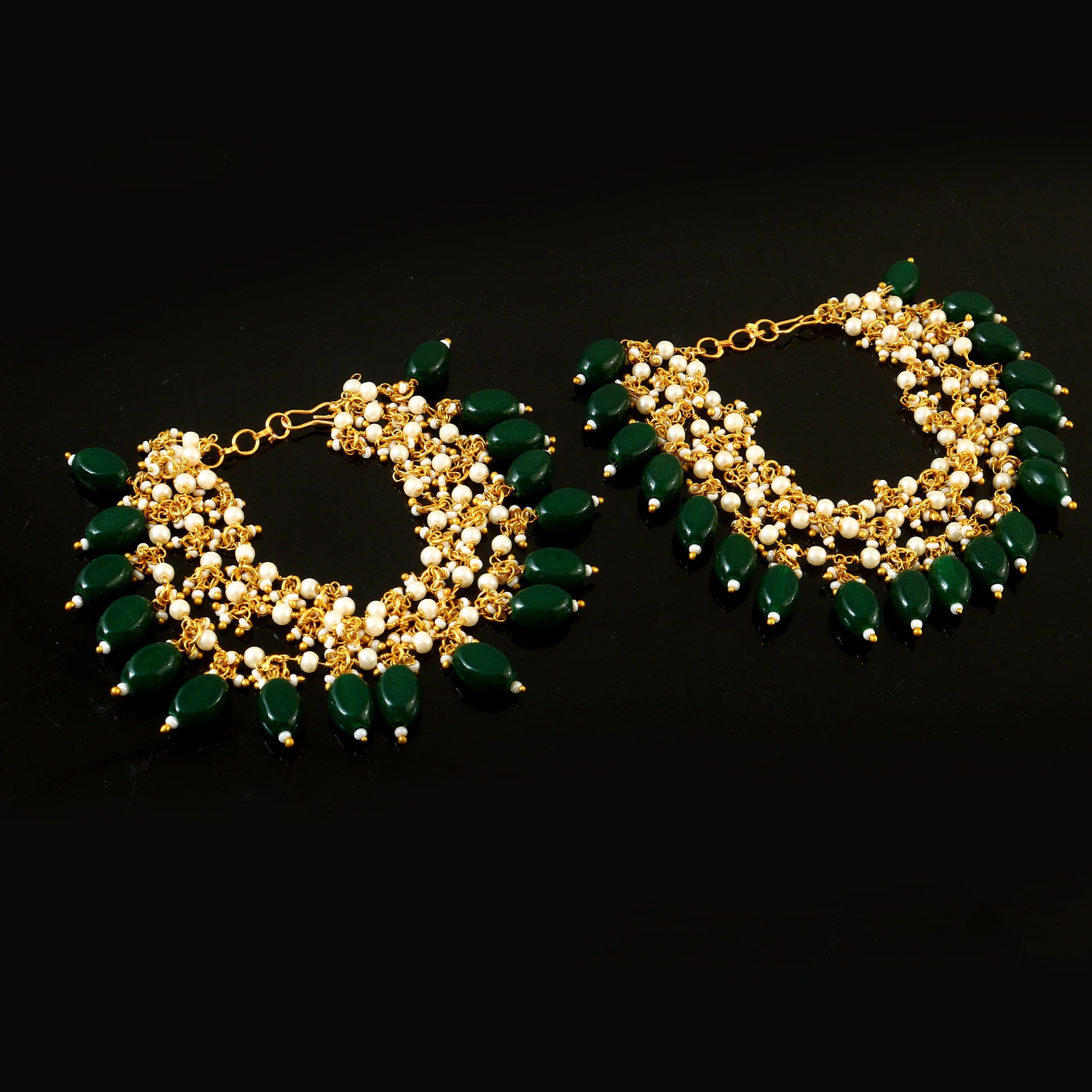 These handcrafted jadau kundan Maatal feature a harmonious blend of red, green, and white hues, showcasing intricate artistry and unique design. Each piece reflects meticulous craftsmanship, making them a distinguished accessory that adds elegance and cultural richness to your collection.